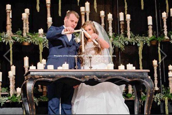 Joseph en Kendra ontstaken een Unity kaars De "Get-a-way car"